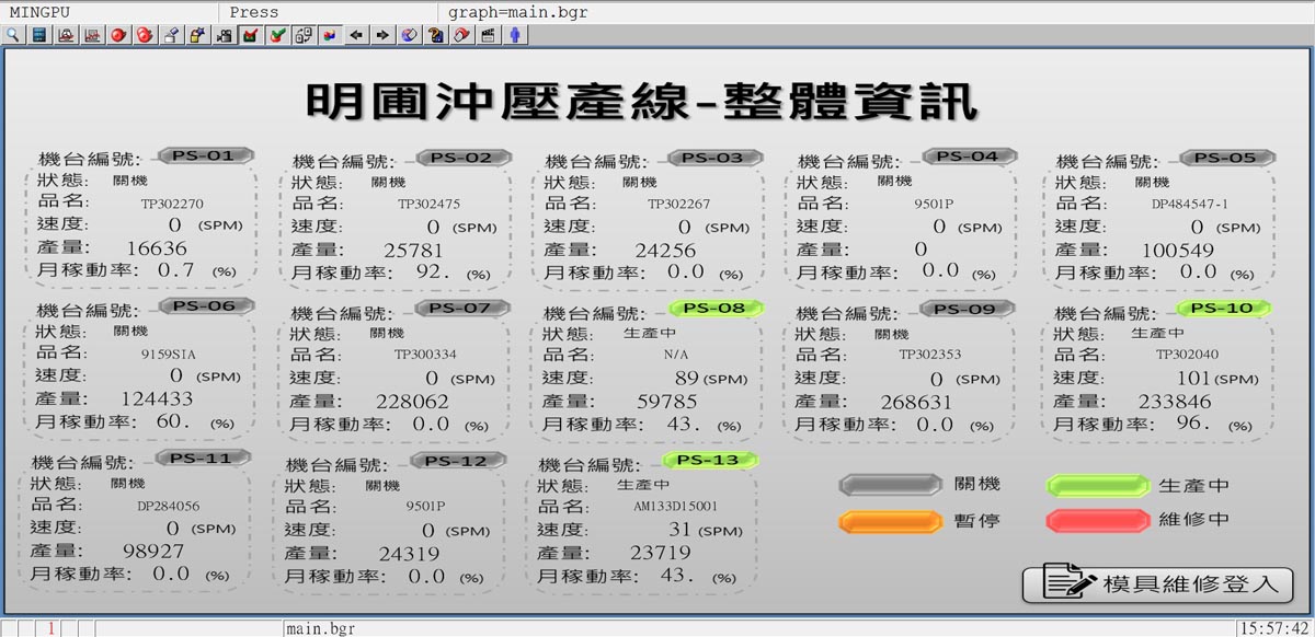 The on-line information meter shows the most update condition of production on M/C dynamically; use scientific thinking and facilities to boost the best output and quality control.
