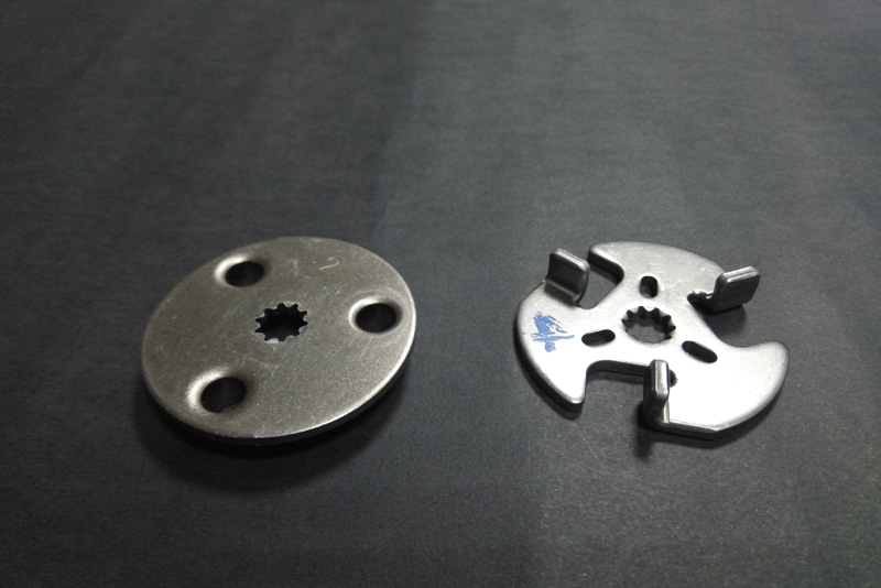 鋼板材經過抽引,在尺寸精準控制下,防止裂隙及刮傷是產品特色;毛邊殘留,皺褶或翹曲嚴格禁止,終端表面處理為震動研磨及軟氮化,同時,產品尺寸能精準配合對手零件裝配是另一特色